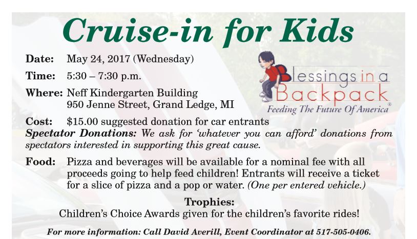 Return to Home Page DOWNLOAD FLYER: Cruise-in for Kids Flyer (2017) Co-Sponsor Share this: Click to share on X (Opens in new window) X Click to share on Facebook (Opens in new window) Facebook Like Loading... Related Published by Tina Erskine View all posts by Tina Erskine